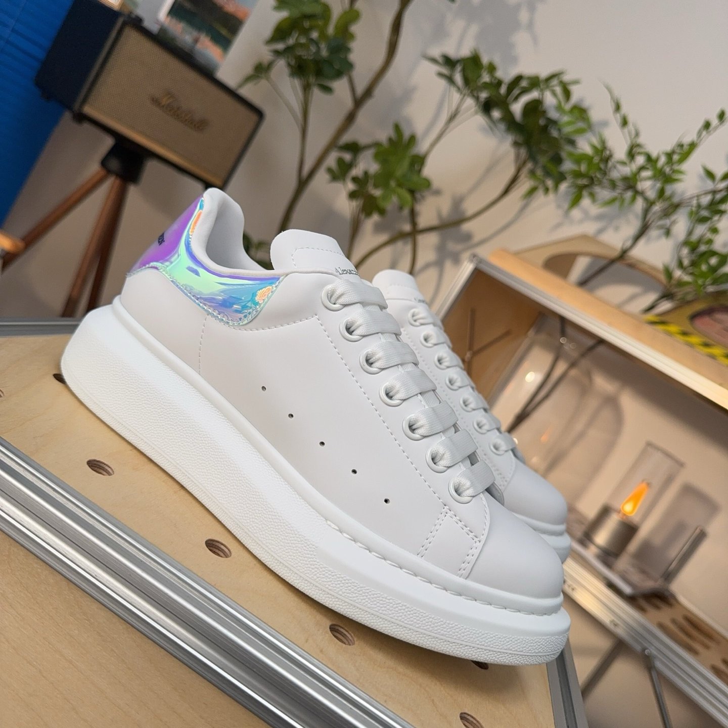 Oversized Sneaker in White/Shock Pink